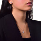 Bloeiende elegantie in harmonie: de REBAKAH-halsketting (5 mm moissanite) en REBAKAH-oorbellen vormen samen een verfijnd bloemvormig ensemble. Beide uitgevoerd in 925 sterling zilver met rhodium plating, met laboratorium-gecreëerde moissanite die diamant overtreft in vuur en schittering.