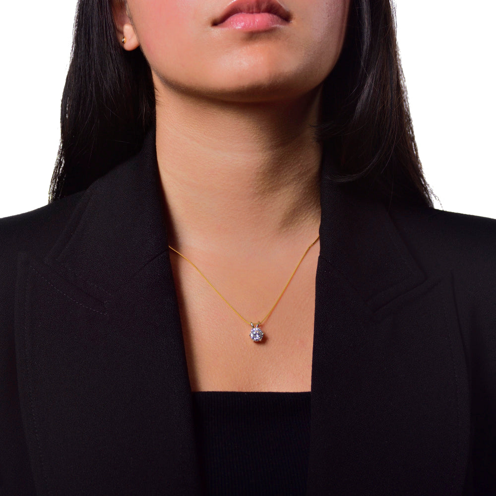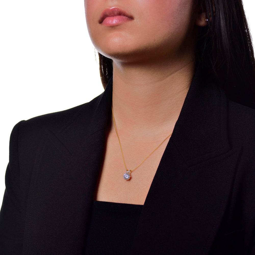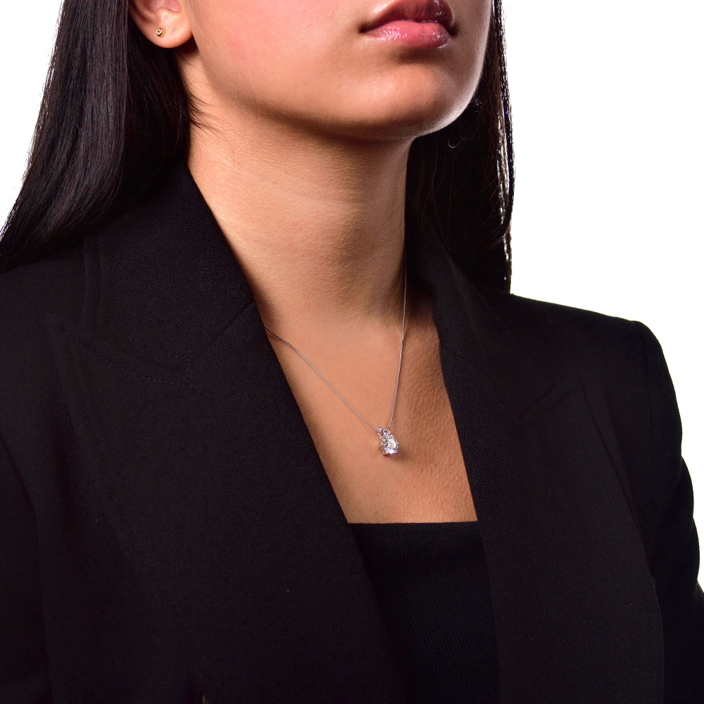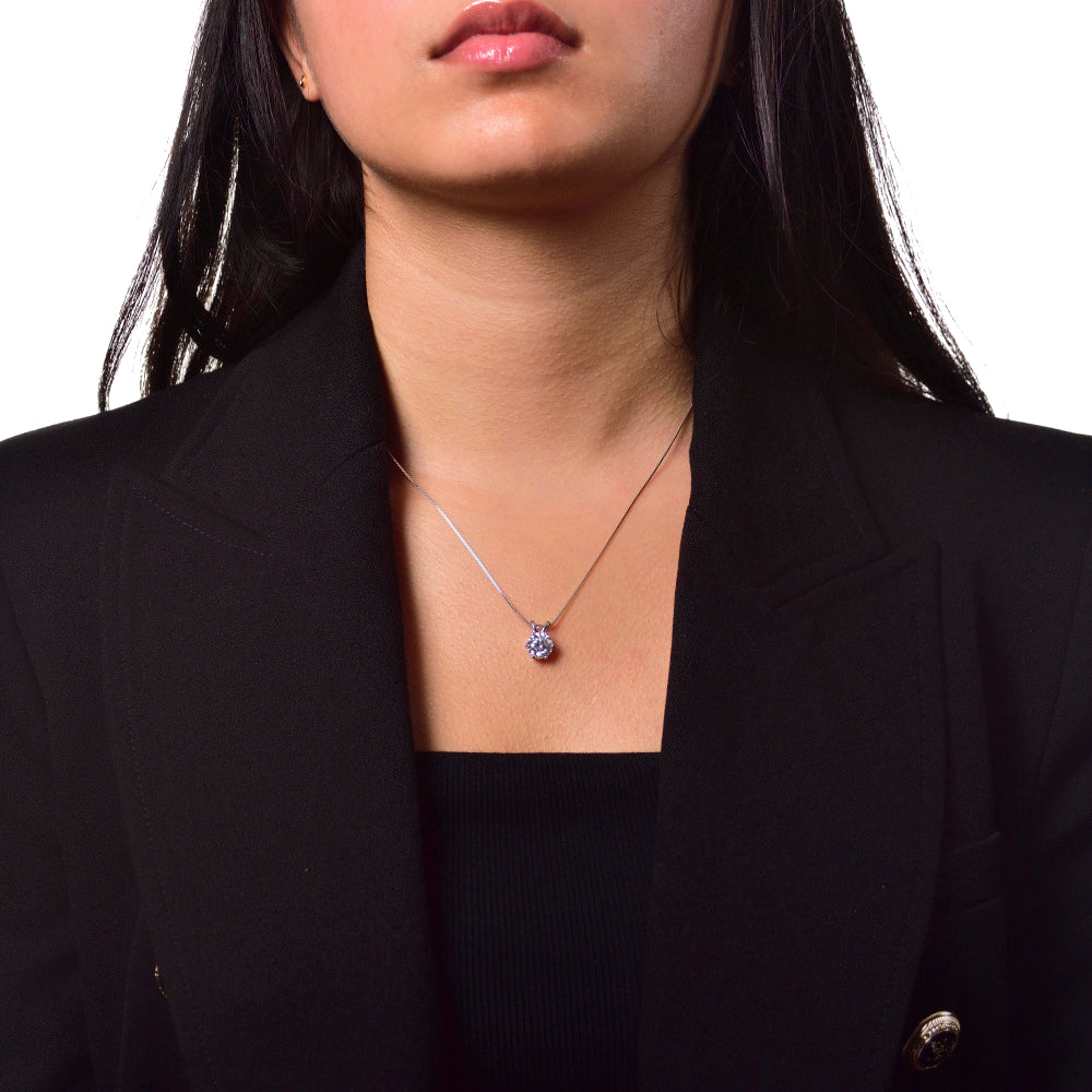 De STARLIGHT-halsketting is een subtiel icoon van pure schittering. In het hart hangt een 8mm laboratorium-gecreëerde moissanite – kristalhelder, handgeslepen en met een vuur dat natuurlijke diamant overtreft. Gezet in massief 925 sterling zilver met een royale 18K wit- of goud plating, straalt deze hanger een tijdloze, luxueuze gloed uit.