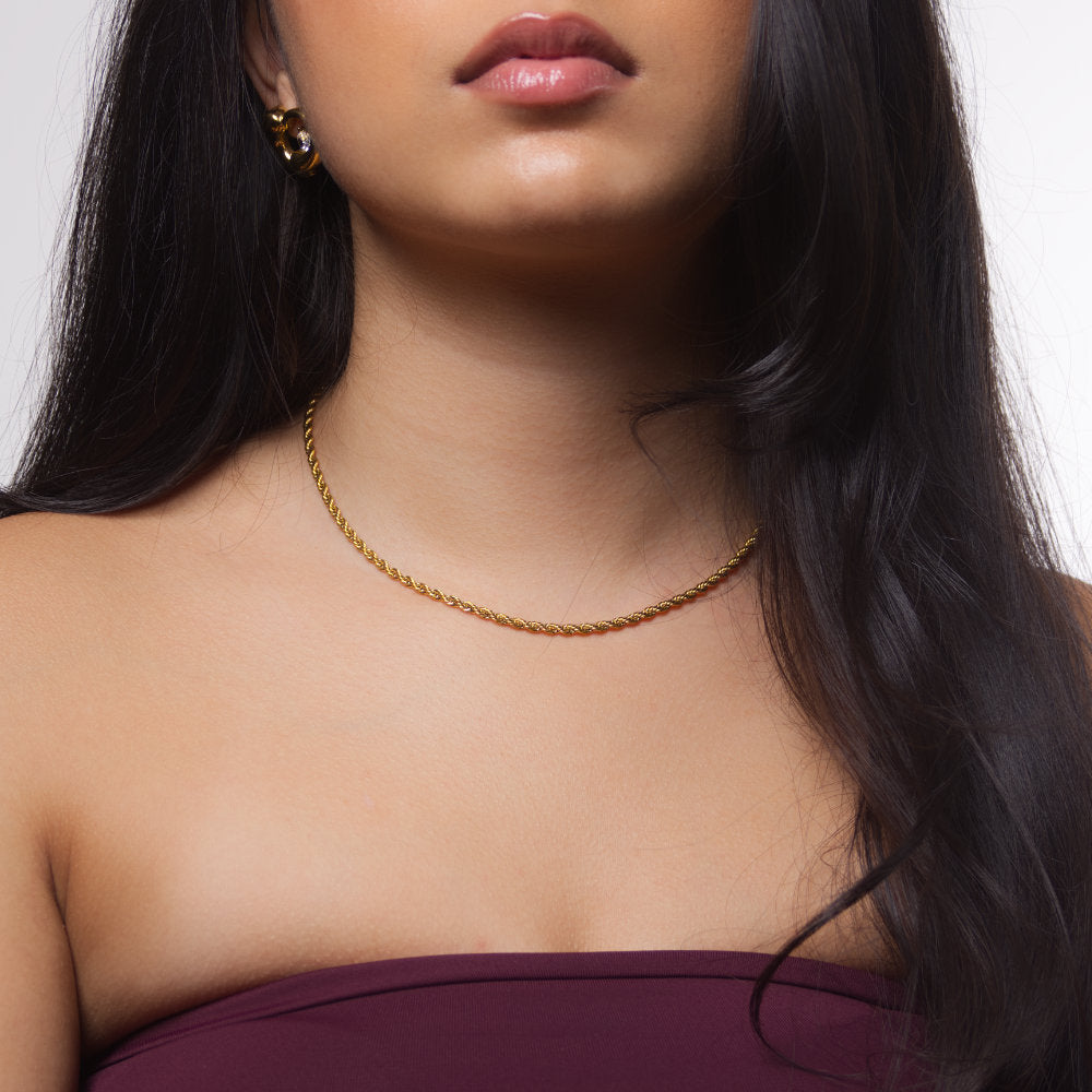 Deze prachtige 4mm brede rope ketting is verguld met hoogwaardig 18-karaats goud, wat zorgt voor een warme, rijke uitstraling en duurzaamheid. Het verfijnde vlechtpatroon biedt niet alleen een elegante look, maar versterkt ook de stevigheid van de ketting.
